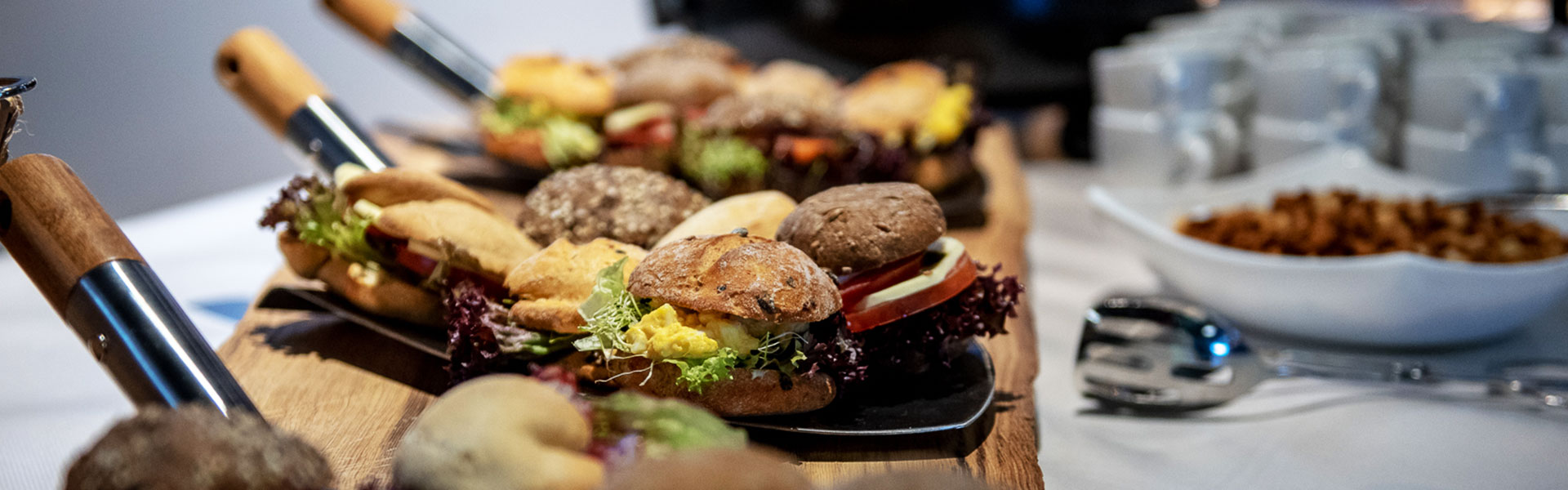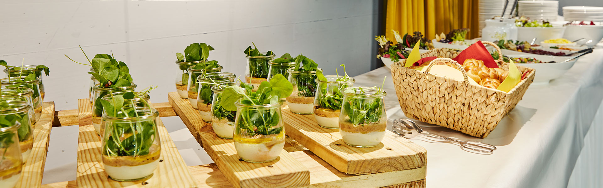 Vom Fingerfood-Häppchen bis zum Mehrgang-Buffet – möglich ist bei uns alles, und zwar immer in höchster Qualität. Die Verpflegung stimmen Sie individuell auf Ihr Event und Ihre Gäste ab.